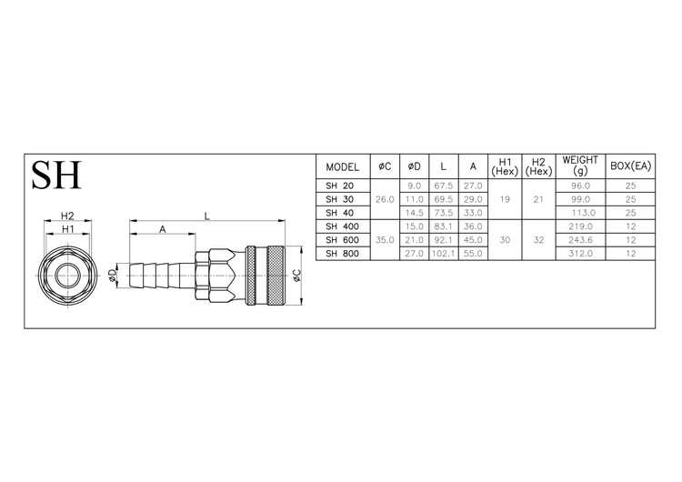 مزایای مادگی کوپلینگ باد سرشیلنگی مدل SH