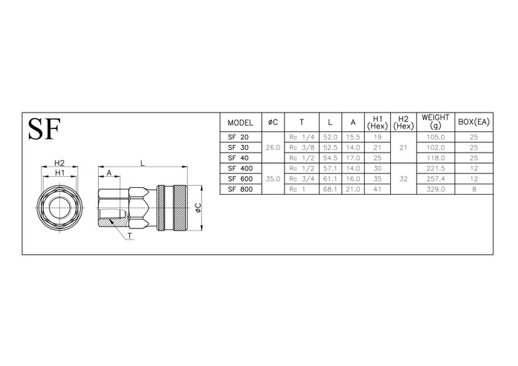 کوپلینگ مادگی باد داخل دنده مدل SF