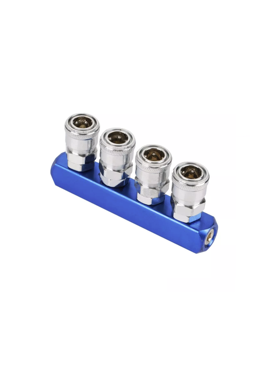 کوپلینگ مادگی چهار راهی بلوکی امکان اتصال چهار مصرفکننده بادی به کمپرسور را به طور هم زمان فراهم میکند.