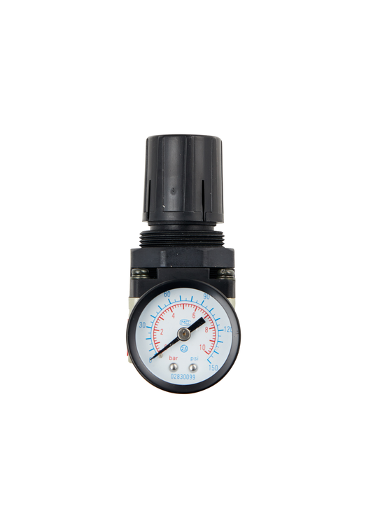 بعد از فیلتر هوای فشرده شده، رگلاتور که به آن کاهنده فشار یا فشار شکن فشار می گویند و یکی از برندهای معروف آن رگلاتور پنوماتیک 1/4 اینچ طرح SMC است، قرار می گیرد. این قطعه وظیفه ثابت نگه داشتن فشار با وجود نوسانات فشار یا مصرف هوا در سیستم را دارد. هر قسمت از دستگاه ها به فشار هوای مشخصی نیاز دارند، به همین علت رگلاتور فشار هوا را برای هر قسمت تنظیم می کند.