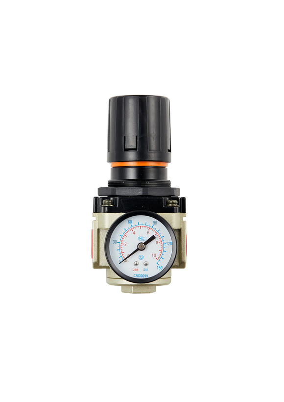 بعد از فیلتر هوای فشرده شده، رگلاتور که به آن کاهنده فشار یا فشار شکن فشار می گویند و یکی از برندهای معروف آن رگلاتور پنوماتیک 1/2 اینچ طرح SMC است، قرار می گیرد. این قطعه وظیفه ثابت نگه داشتن فشار با وجود نوسانات فشار یا مصرف هوا در سیستم را دارد. هر قسمت از دستگاه ها به فشار هوای مشخصی نیاز دارند، به همین علت رگلاتور فشار هوا را برای هر قسمت تنظیم می کند.