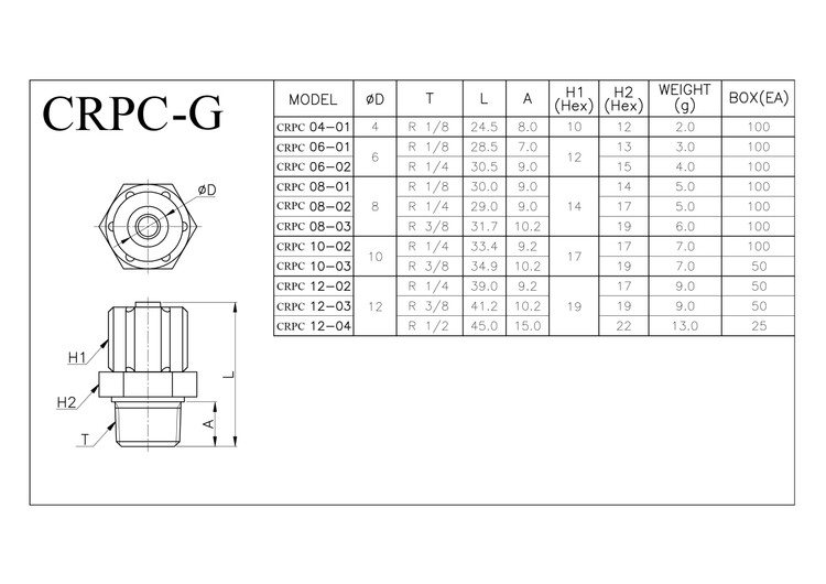 اتصال پنوماتیک مستقیم مهره ای فلزی CRPC