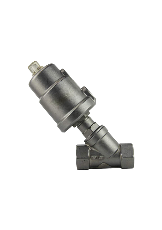 تحریک این شیر به صورت بادی بوده و از طریق فشار هوا بر روی پیستون و استم، عملیات باز و بست شیر انجام می شود. انگل ولو های پنوماتیکی به صورت نرمال اپن و هم نرمال کلوز موجود می باشند، که در حالت اول باز بوده و با اعمال فشار بسته می شود و در حالت دوم در حالت عادی بسته می باشد که با اعمال فشار بر روی پیستون باز می گردد.